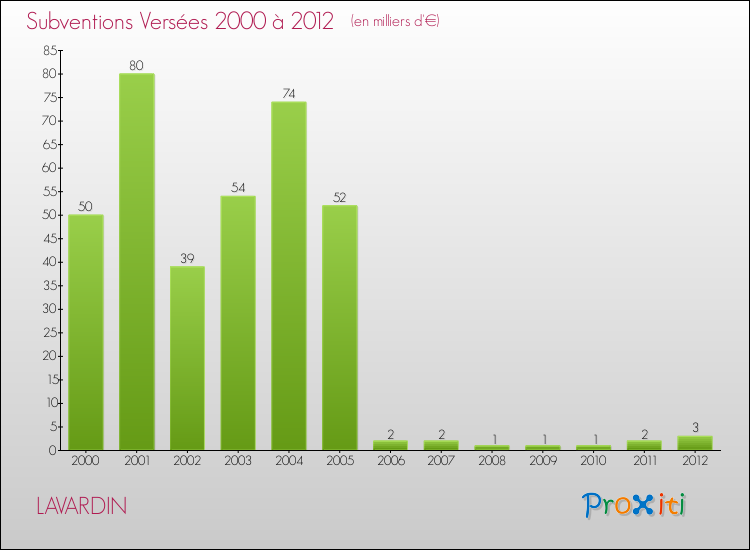 Le résultat comptable de la commune de Lavardin s'établissait ainsi à : + 61 000 € fin 2012.