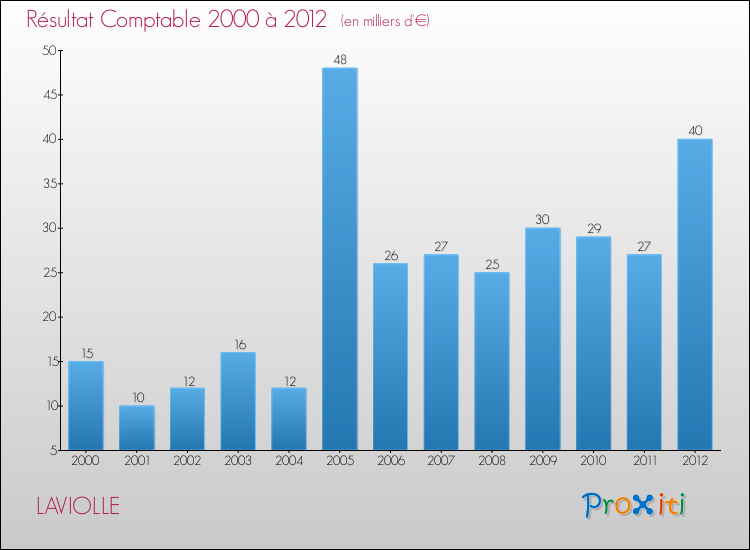 Le résultat comptable de la commune de Laviolle s'établissait ainsi à : + 40 000 € fin 2012.