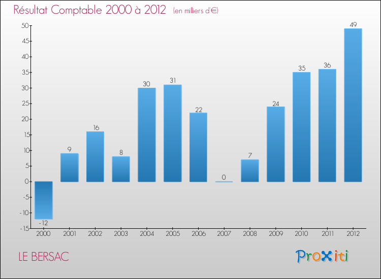 Le résultat comptable de la commune de Le Bersac s'établissait ainsi à : + 49 000 € fin 2012.