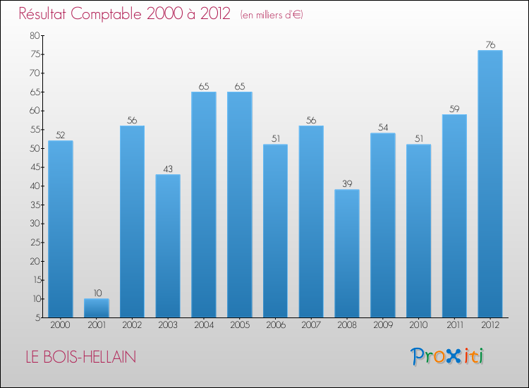 Le résultat comptable de la commune de Le Bois-Hellain s'établissait ainsi à : + 76 000 € fin 2012.