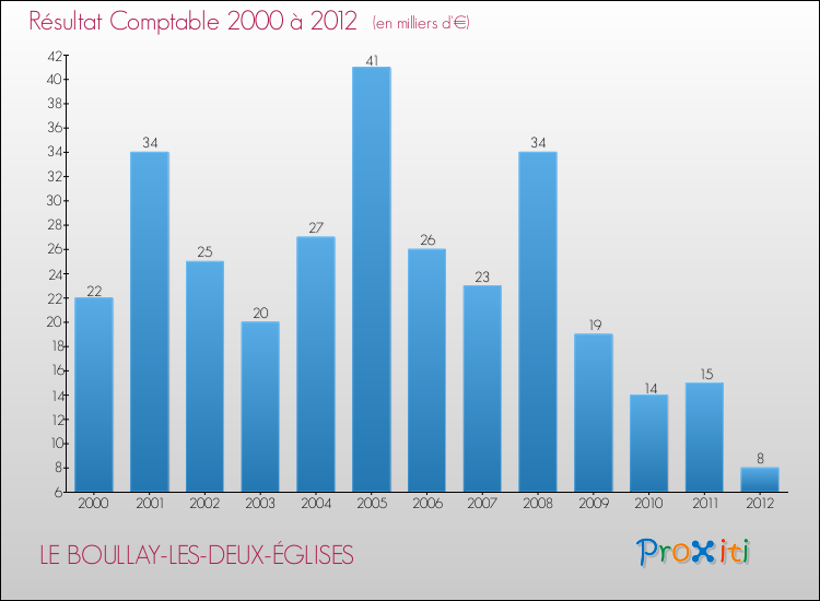 Le résultat comptable de la commune de Le Boullay-les-Deux-Églises s'établissait ainsi à : + 8 000 € fin 2012.