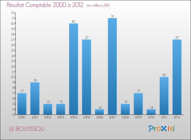 Le résultat comptable de la commune de Le Bouyssou s'établissait ainsi à : + 27 000 € fin 2012.