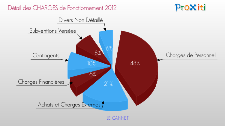 En 2012, les charges de fonctionnement de la commune de Le Cannet étaient de : 60 205 000 € décomposées comme suit :