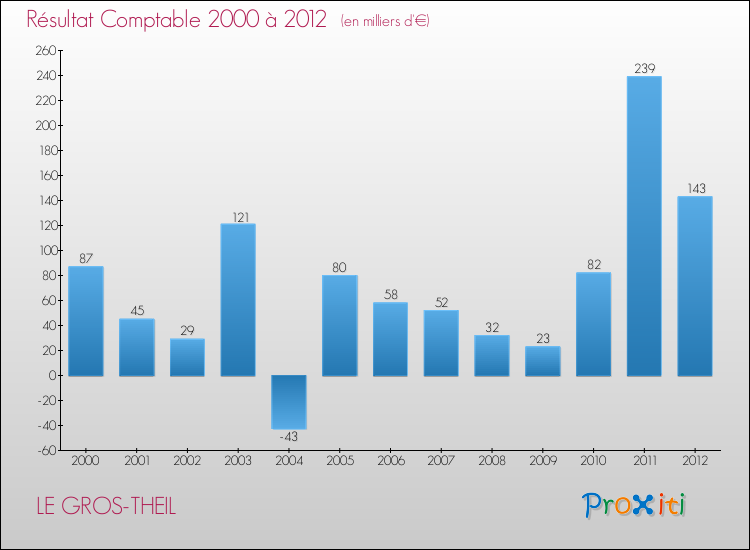 Le résultat comptable de la commune de Le Gros-Theil s'établissait ainsi à : + 143 000 € fin 2012.
