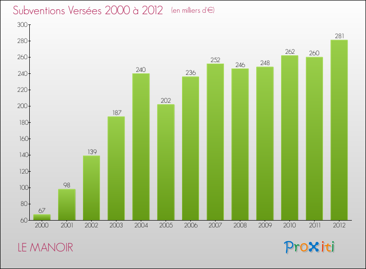 Le résultat comptable de la commune de Le Manoir s'établissait ainsi à : + 45 000 € fin 2012.
