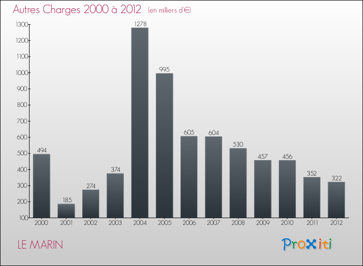Le résultat comptable de la commune de Le Marin s'établissait ainsi à : -349 000 € fin 2012 (recettes-dépenses).
