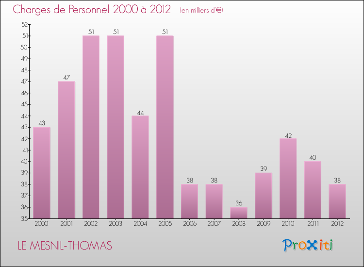 En 2012, les charges de fonctionnement de la commune de Le Mesnil-Thomas étaient de : 145 000 € décomposées comme suit :
