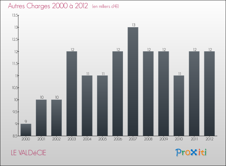 En 2012, les charges de fonctionnement de la commune de Le Valdécie étaient de : 50 000 € décomposées comme suit :