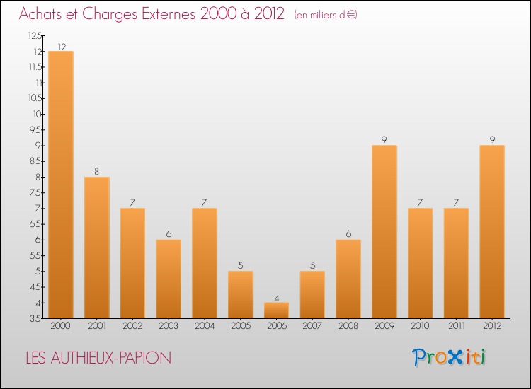 En 2012, les charges de fonctionnement de la commune de Les Authieux-Papion étaient de : 33 000 € décomposées comme suit :