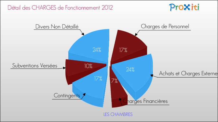 En 2012, les charges de fonctionnement de la commune de Les Chambres étaient de : 41 000 € décomposées comme suit :