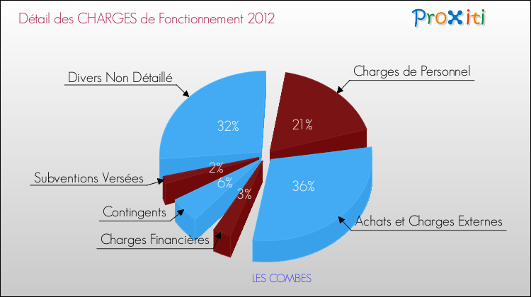 En 2012, les charges de fonctionnement de la commune de Les Combes étaient de : 374 000 € décomposées comme suit :