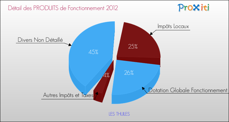 En 2012, le budget de fonctionnement de la commune de Les Thuiles se montait à : 322 000 € décomposé comme suit :