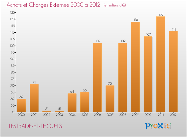 En 2012, les charges de fonctionnement de la commune de Lestrade-et-Thouels étaient de : 475 000 € décomposées comme suit :