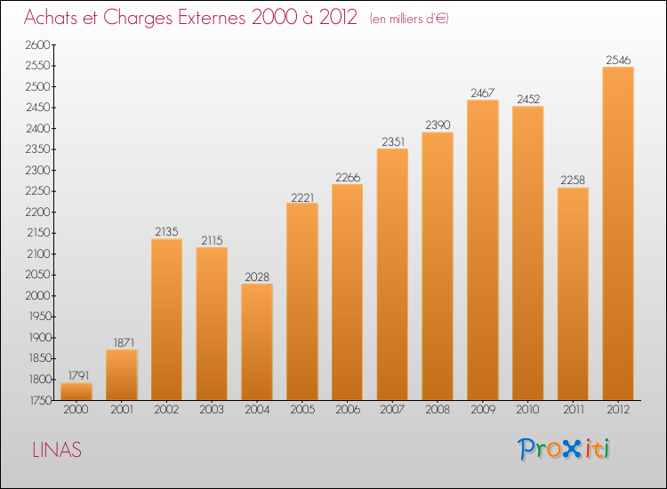 En 2012, les charges de fonctionnement de la commune de Linas étaient de : 7 722 000 € décomposées comme suit :