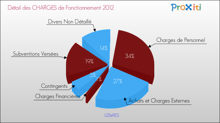 En 2012, les charges de fonctionnement de la commune de Lizières étaient de : 139 000 € décomposées comme suit :