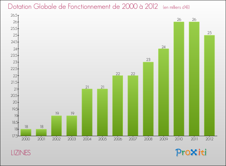 En 2012, les charges de fonctionnement de la commune de Lizines étaient de : 126 000 € décomposées comme suit :