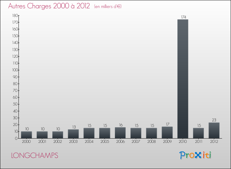En 2012, les charges de fonctionnement de la commune de Longchamps étaient de : 250 000 € décomposées comme suit :