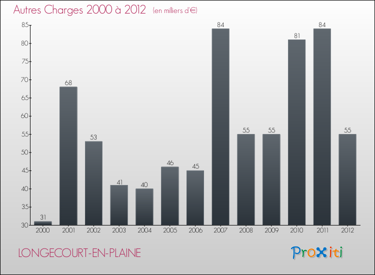 En 2012, les charges de fonctionnement de la commune de Longecourt-en-Plaine étaient de : 524 000 € décomposées comme suit :