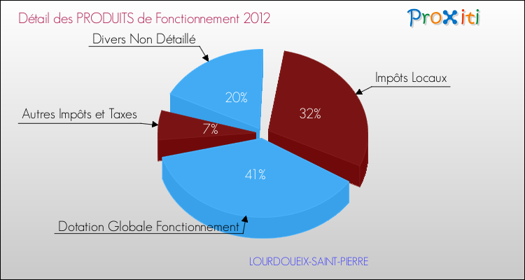 En 2012, le budget de fonctionnement de la commune de Lourdoueix-Saint-Pierre se montait à : 577 000 € décomposé comme suit :