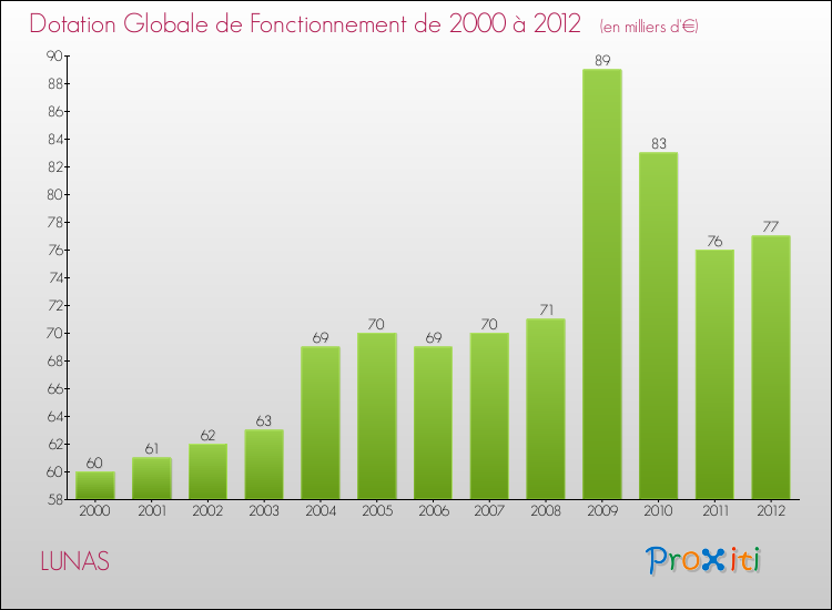 Le résultat comptable de la commune de Lunas s'établissait ainsi à : + 58 000 € fin 2012.