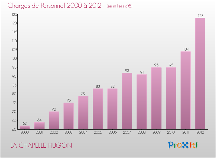 En 2012, les charges de fonctionnement de la commune de La Chapelle-Hugon étaient de : 264 000 € décomposées comme suit :