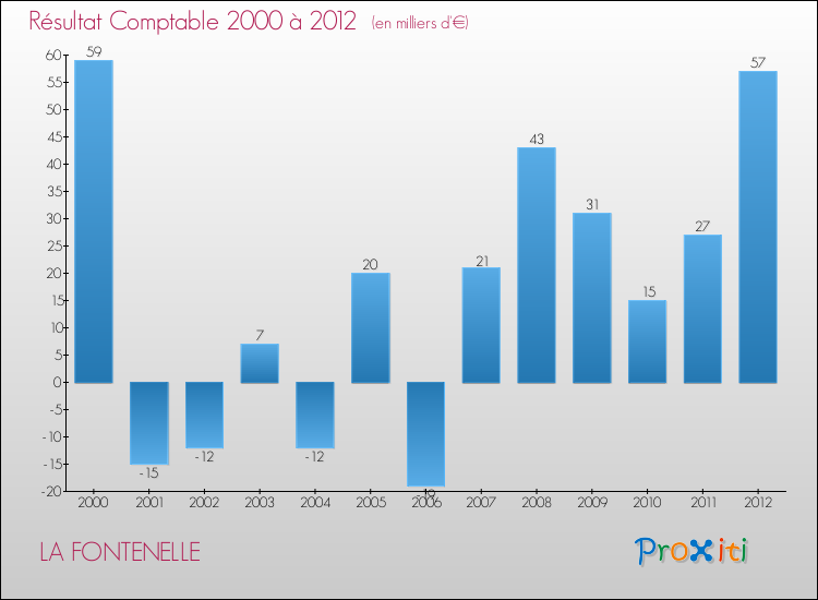 Le résultat comptable de la commune de La Fontenelle s'établissait ainsi à : + 57 000 € fin 2012.