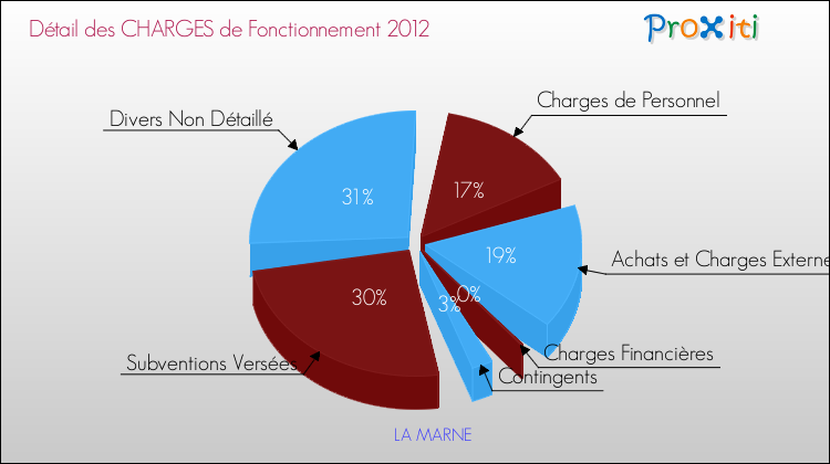 En 2012, les charges de fonctionnement de la commune de La Marne étaient de : 464 000 € décomposées comme suit :