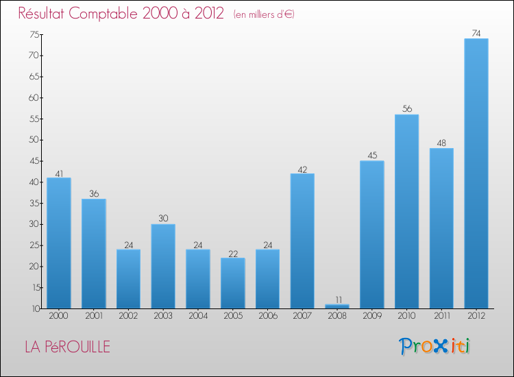 Le résultat comptable de la commune de La Pérouille s'établissait ainsi à : + 74 000 € fin 2012.