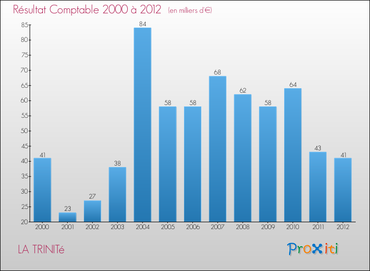 Le résultat comptable de la commune de La Trinité s'établissait ainsi à : + 41 000 € fin 2012.