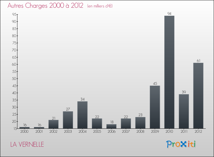 En 2012, les charges de fonctionnement de la commune de La Vernelle étaient de : 355 000 € décomposées comme suit :