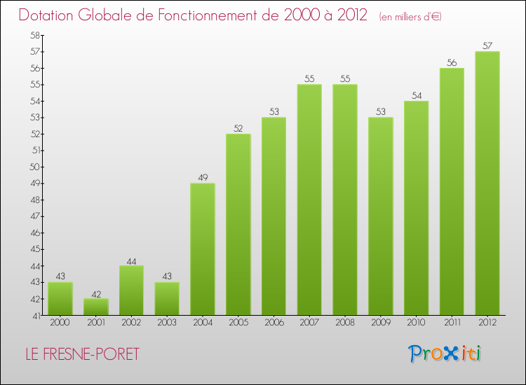 Le résultat comptable de la commune de Le Fresne-Poret s'établissait ainsi à : + 46 000 € fin 2012.