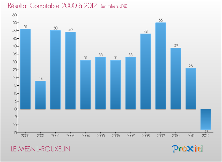 Le résultat comptable de la commune de Le Mesnil-Rouxelin s'établissait ainsi à : -13 000 € fin 2012 (recettes-dépenses).