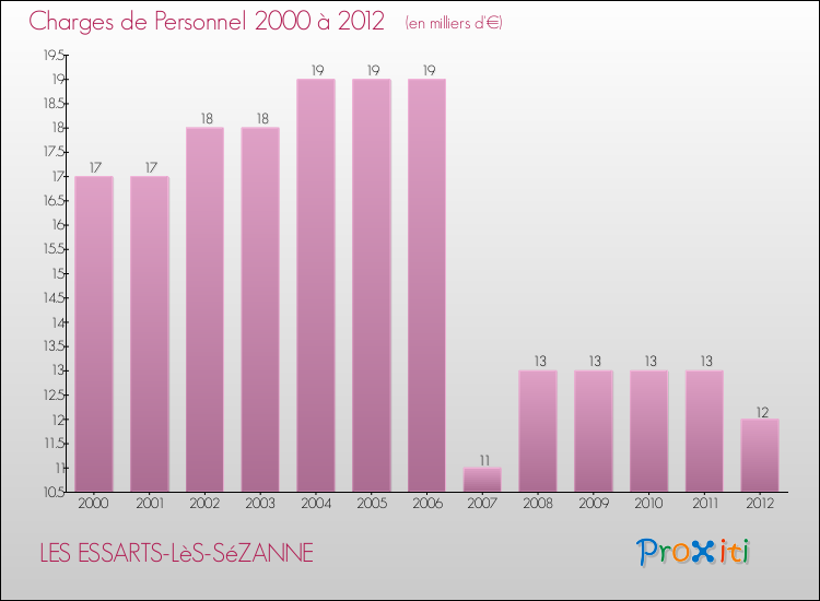 - Charges de Personnel (principalement pour payer les employés municipaux) : 12 000 €