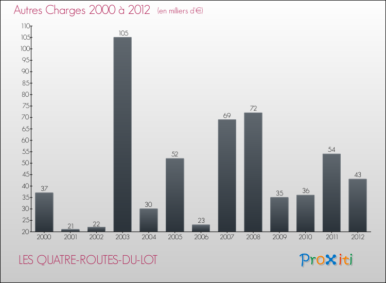 En 2012, les charges de fonctionnement de la commune de Les Quatre-Routes-du-Lot étaient de : 401 000 € décomposées comme suit :