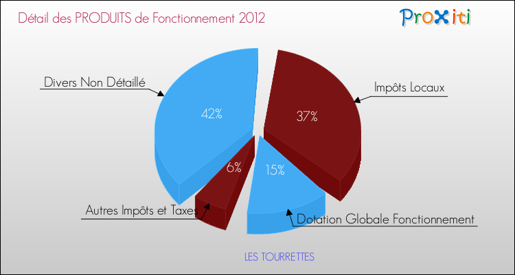 En 2012, le budget de fonctionnement de la commune de Les Tourrettes se montait à : 627 000 € décomposé comme suit :