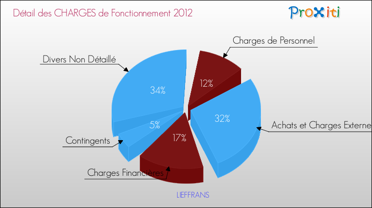 En 2012, les charges de fonctionnement de la commune de Lieffrans étaient de : 41 000 € décomposées comme suit :