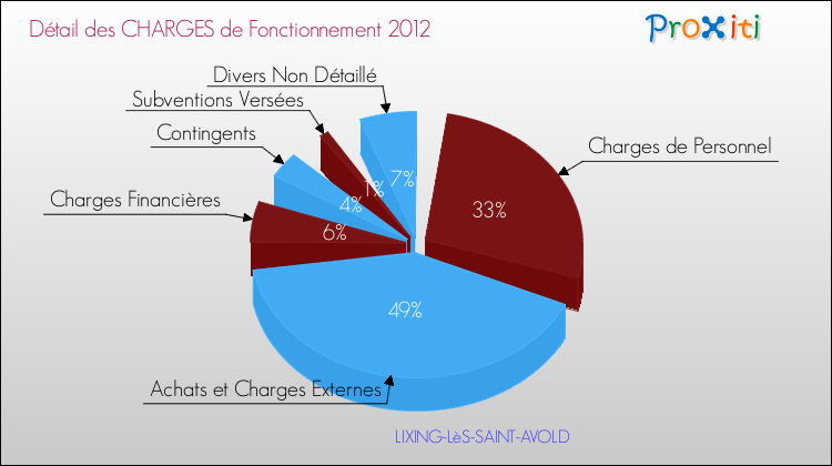 En 2012, le budget de fonctionnement de la commune de Lixing-lès-Saint-Avold se montait à : 407 000 € décomposé comme suit :