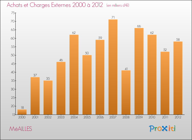 En 2012, les charges de fonctionnement de la commune de Méailles étaient de : 138 000 € décomposées comme suit :
