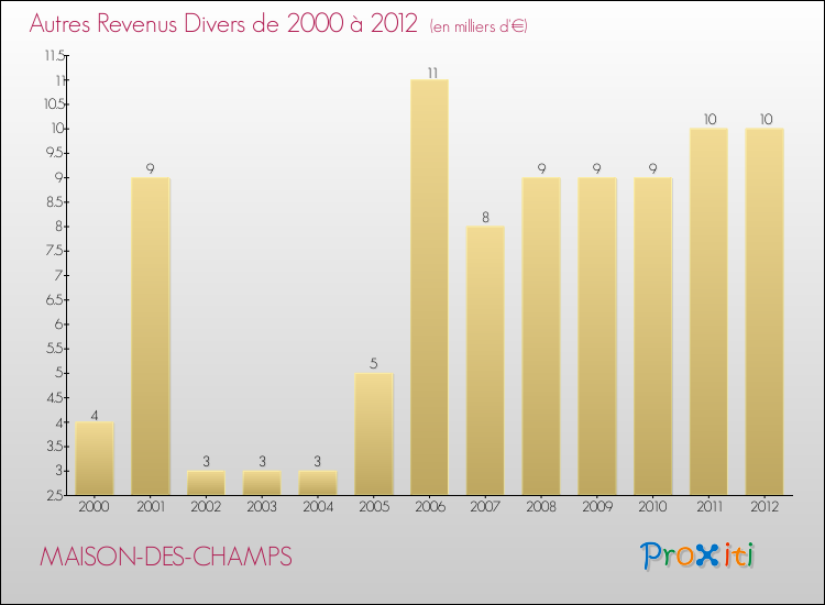 Le résultat comptable de la commune de Maison-des-Champs s'établissait ainsi à : + 10 000 € fin 2012.