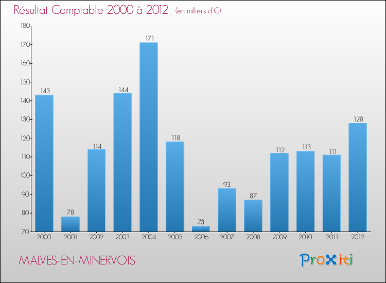 Le résultat comptable de la commune de Malves-en-Minervois s'établissait ainsi à : + 128 000 € fin 2012.