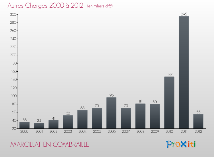 En 2012, les charges de fonctionnement de la commune de Marcillat-en-Combraille étaient de : 813 000 € décomposées comme suit :