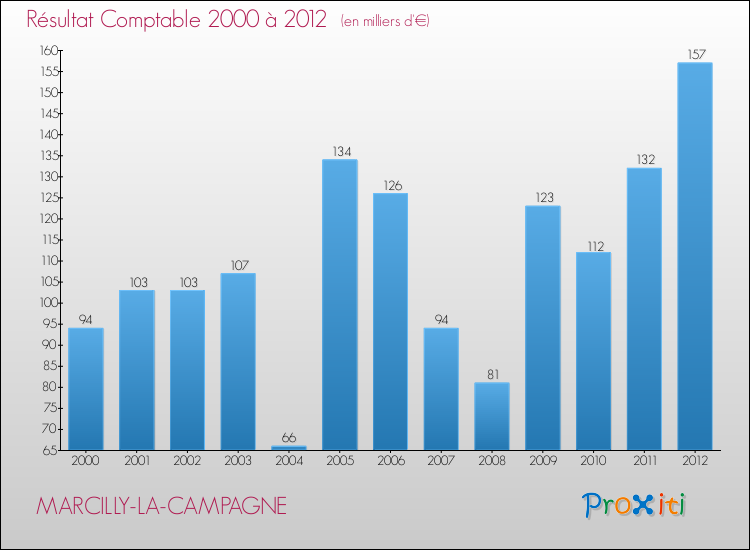 Le résultat comptable de la commune de Marcilly-la-Campagne s'établissait ainsi à : + 157 000 € fin 2012.