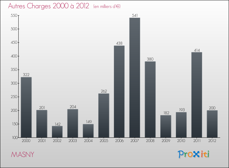 En 2012, le budget de fonctionnement de la commune de Masny se montait à : 3 544 000 € décomposé comme suit :