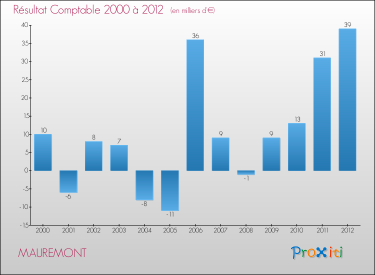 Le résultat comptable de la commune de Mauremont s'établissait ainsi à : + 39 000 € fin 2012.