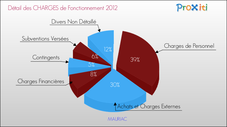 En 2012, les charges de fonctionnement de la commune de Mauriac étaient de : 4 059 000 € décomposées comme suit :
