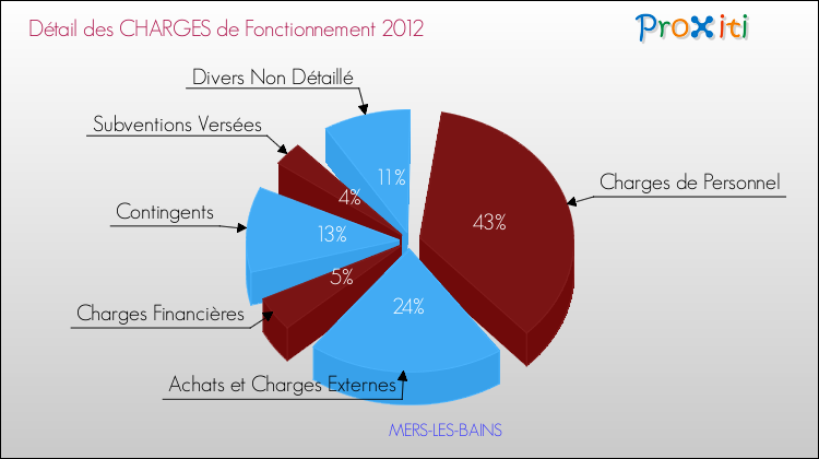 En 2012, les charges de fonctionnement de la commune de Mers-les-Bains étaient de : 5 246 000 € décomposées comme suit :