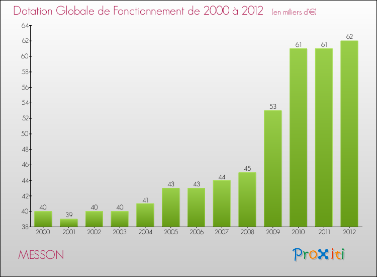 En 2012, le budget de fonctionnement de la commune de Messon se montait à : 228 000 € décomposé comme suit :