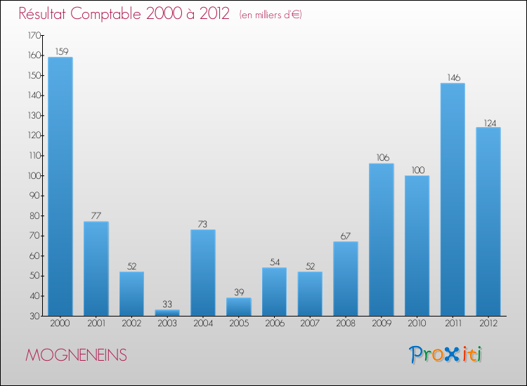 Le résultat comptable de la commune de Mogneneins s'établissait ainsi à : + 124 000 € fin 2012.