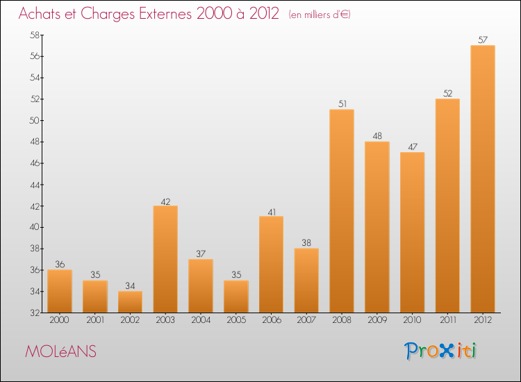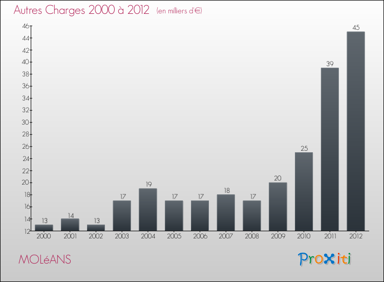 En 2012, les charges de fonctionnement de la commune de Moléans étaient de : 257 000 € décomposées comme suit :