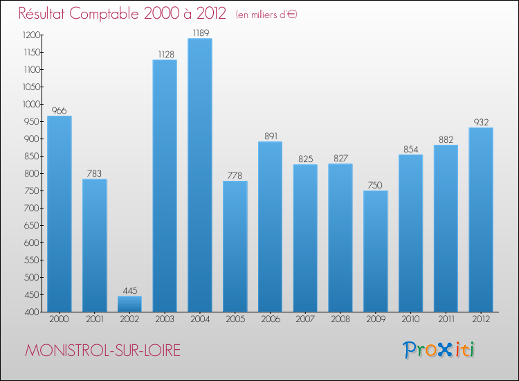 Le résultat comptable de la commune de Monistrol-sur-Loire s'établissait ainsi à : + 932 000 € fin 2012.
